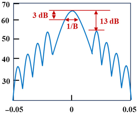 In 2019, P. Zhang et al. [53] proposed a digital linear frequency modulation (DLFM)-based OTDR that incorporated short-time fractional Fourier transform (STFrFT) for signal processing and noise filtering. The original LFM pulse was compressed into a narrow sinc-shaped pulse through STFrFT. As illustrated in Figure 10, the FWHM of the main lobe equals 1/B, where B represents the frequency modulation range.