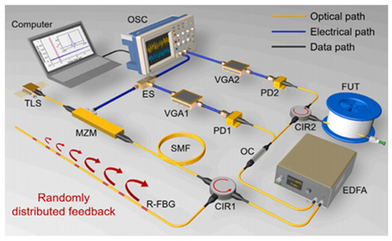 - Liu, H.; Dong, G.M.; Zhao, T. Monitoring Distance Enhancement with Chaotic Laser for OTDR System. IEEE Sens. J. 2024, 24, 2822–2827. [Google Scholar]