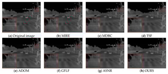 - Wang, S.P. Stripe noise removal for infrared image by minimizing difference between columns. Infrared Phys. Technol. 2016, 77, 58–64. [Google Scholar] [CrossRef]