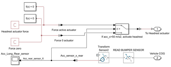 28]. The integration of sensor-based logic into the active headrest system thus provides a significant enhancement to occupant protection, reducing the risk of whiplash injuries by supporting the occupant’s head earlier in the collision event [