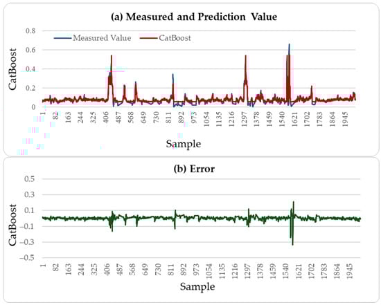 These results indicate that the incremental neural network model proposed in this paper performs well in predicting soft sensor data collected from industrial processes. A comparison of the predictive performance of the LSTM, CatBoost, and incremental neural network on the outlet MAPD concentration of the testing set with the measured values was conducted, resulting in a prediction of 3000 outlet MAPD concentration data points, as shown in Figure 8, Figure 9 and Figure 10.