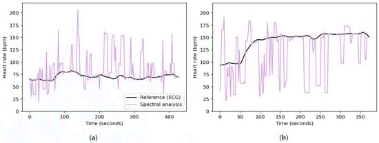 Figure 3. Heart rates obtained from the spectral analysis of (a) a walking session and (b) a running session from the UTOKYO dataset. - C.