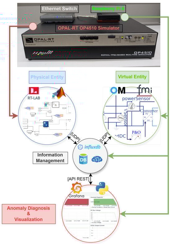This work has introduced a comprehensive and transferable fault diagnosis framework for DC–DC converters in PV systems. By using a DT implemented via the FMI standard, the system enables accurate emulation of key electrical variables and facilitates real-time fault detection through continuous comparison with physical measurements.