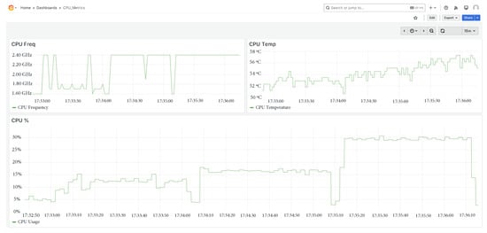A three-step stress test was executed with 8, 96, and 192 channels sampled at 100 Hz, each load level lasting 60 s. The results—summarised in Figure 16—confirm that a Raspberry Pi 5 provides ample computational headroom for real-time execution: