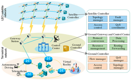 - Dong, F.; Zhang, Y.; Liu, G.; Heng, Y.; Sun, C. Delay-sensitive service provisioning in software-defined low-earth-orbit satellite networks. Electronics 2023, 12, 3474. [Google Scholar] [CrossRef]