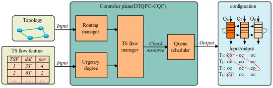 The TPC-CQF control plane scheduling mechanism fundamentally differs from traditional CQF in time-sensitive traffic handling. Leveraging the SDN controller, TPC-CQF integrates path computation and flow scheduling management. This controller dynamically assigns flows to priority-tiered queues based on deadline-driven urgency. Furthermore, the queue priority design explicitly balances two critical considerations: packet loss risks from buffer constraints and mandatory service differentiation across priority levels.