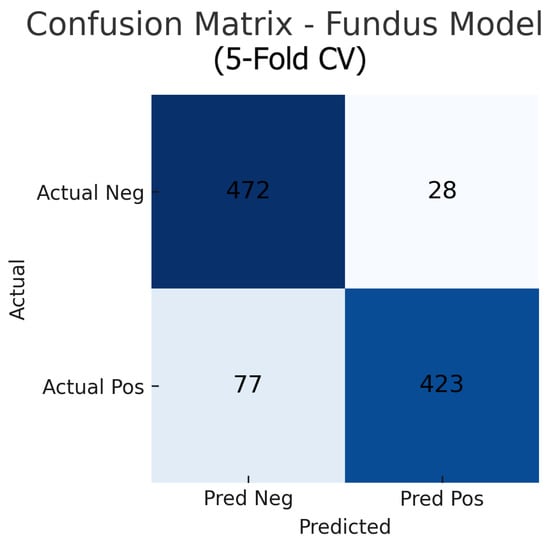 All convolutional layers in the OCT branch use a kernel size of . This small kernel size is a common choice in modern CNNs as it is effective for capturing local patterns while keeping the number of parameters manageable [62]. We increase the number of filters with each subsequent convolutional layer to allow the network to learn increasingly complex features: the first conv layer uses 32 filters, the second 64, the third 128, and the fourth 256 filters. A stride of 1 is used for all convolutions, and padding is applied so that the spatial resolution is preserved before each pooling (ensuring that each pooling operation exactly halves the width and height of the feature maps). After the fourth convolutional layer, instead of standard pooling, we employ a global average pooling operation (as done in the fundus branch). The global average pooling on the final 256 feature maps yields a 256-dimensional vector summarising the OCT features. This approach avoids flattening a large feature map (which would produce a very high-dimensional vector) and greatly reduces the number of parameters in subsequent layers.