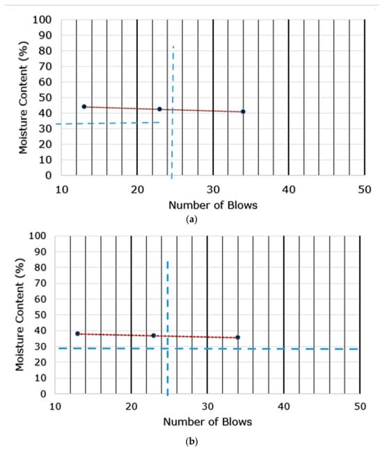 Atterberg limit test output graphs: (a) Ivrogbo sample; (b) Oleh sample.