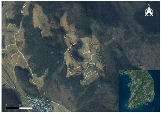 The site of the doline topography study. (The red square indicates the location of Gulneomjae in the Republic of Korea.)