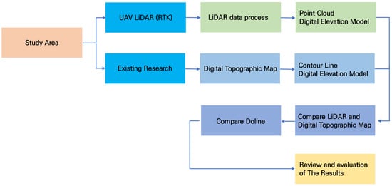 Figure 3 illustrates the overall flow of the research. The process of the study consisted of data collection for the study area, data processing, creation of comparison DEMs, comparison with previous research results, and analysis of the detailed topography of the dolines.