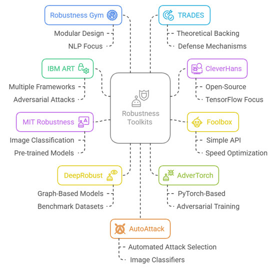- Nicolae, M.I.; Sinn, M.; Tran, M.N.; Buesser, B.; Rawat, A.; Wistuba, M.; Zantedeschi, V.; Baracaldo, N.; Chen, B.; Ludwig, H.; et al. Adversarial Robustness Toolbox v1.0.0. arXiv 2018, arXiv:1807.01069. [Google Scholar]