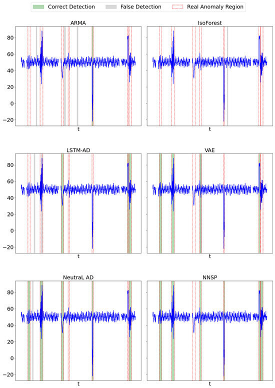 We select five mainstream anomaly detection methods as the baseline for unsupervised learning. These include ARMA [23], Isolation Forest [24], LSTM-AD [25], VAE [26], and NeutraL AD [27]. These methods were selected to represent a diverse range of anomaly detection techniques: ARMA as a classical statistical model, Isolation Forest as a tree-based ensemble method, LSTM-AD and VAE as deep learning models, and NeutraL AD as a self-attention-based method. All are unsupervised and have been widely applied to time series anomaly detection tasks, including those with industrial and incomplete data. These baseline methods were selected in accordance with the approaches reviewed in the Section 2, ensuring consistency between theoretical references and experimental comparisons.