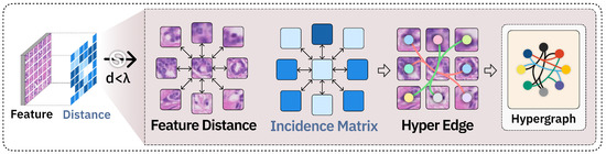 In a hypergraph, each feature point can be regarded as a vertex, which means that the total number of vertices corresponds to the total number of pixels on the feature map. With such a high number of vertices, a major challenge is to create an effective strategy for constructing hyperedges that can efficiently identify meaningful relationships between them. The construction method of the hypergraph can be visualized as shown in Figure 5.