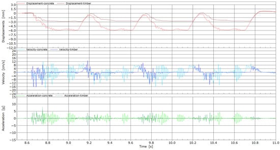 3.2. Differences Between the Responses of Standard Concrete and Wooden Sleepers in the Partly Damaged Area