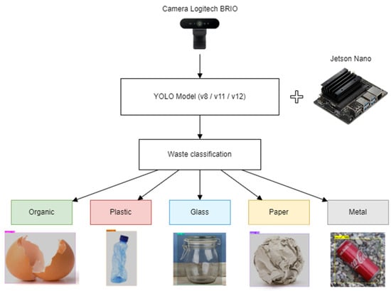 - Arishi, A. Real-Time Household Waste Detection and Classification for Sustainable Recycling: A Deep Learning Approach. Sustainability 2025, 17, 1902. [Google Scholar] [CrossRef]