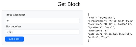 In addition, another critical and often underestimated aspect is the traceability and security of the information generated from these classification processes [33]. The ability to robustly obtain, store, and analyze the detailed history of detected and classified items is not only critical for continuous system optimization but also opens up new avenues for statistical analysis and decision-making in waste management on a larger scale. Smart waste sorting systems generate a considerable volume of data, such as the type of material detected or the date. Our system proposes to make use of a private blockchain based on Ethereum to guarantee the traceability and security of classified garbage information [34]. Geth, or Go Ethereum, is the core technology of such a data structure, tasked with tasks such as blockchain initialization, node execution, network communication, and mining [35].