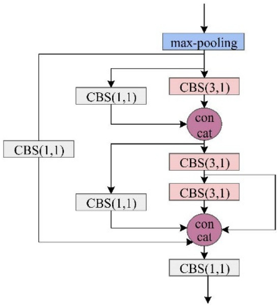 The module employs a multi-stage processing pipeline. Initial downsampling is achieved through max-pooling operations, serving dual purposes of reducing computational complexity while preserving critical spatial information that might otherwise be lost through excessive convolutional layers. The processed features then undergo multi-scale analysis using strategically sized Convolutional Kernels (Conv-Ks). Larger Conv-Ks establish cross-channel feature relationships, and specialized Conv-Ks extract high-level semantic patterns. Then, the combined outputs create an expanded receptive field. The final stage employs 1 × 1 convolutions for dimensional consistency, effectively consolidating the enriched feature representations while maintaining computational efficiency.