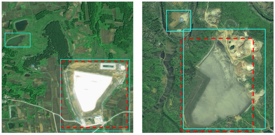 Table 5 presents the classification performance of our detection framework across various topographic categories of tailing impoundments, revealing superior accuracy for V-TIs compared to S-TIs and F-TIs. This performance disparity primarily stems from dataset imbalance, with mountainous samples outnumbering other instances, compounded by the prevalence of spectrally similar features in plains regions. Figure 7 illustrates characteristic misclassifications where some ephemeral water bodies and bare lands are incorrectly identified as TIs due to comparable visual characteristics in both spectral reflectance and geometric patterns, highlighting the current limitations in distinguishing subtle feature differences within homogeneous landscapes.