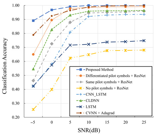 | Differentiated pilot symbols + ResNet [14] | 92.50 | 92.57 | 92.52 | 92.54 |