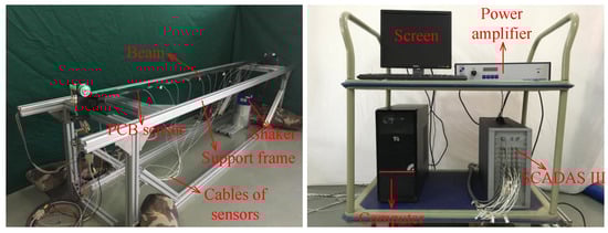 In practice, the identified modal parameters with a specified model structure are random variables due to random excitation and measurement noise, which can be approximated as multivariate normally distributed variables according to the Central Limit Theorem. As illustrated in Section 2.3, the variance of modal parameters can be estimated using the following procedure: first estimate the variance of coefficients from Equation (12), then compute the variance of the eigenvalues and eigenvectors of , and finally compute the variance of modal parameters. Along with this idea, the variance of modal parameters is quantified using the first-order perturbation method reported in Refs. [,,].