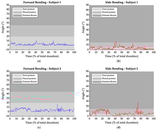 Figure 3 summarizes the temporal trends of forward and lateral trunk flexion angles for each subject during the session.