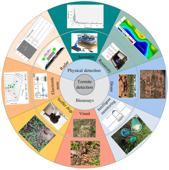Different methods for termite detection [31,35,40,41,42,43,44,45,46,47].