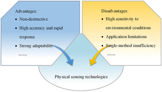 Physical detection technologies offer notable advantages such as non-destructiveness, high accuracy, and rapid response. These methods primarily identify and locate subsurface anomalies caused by termite activity, which include techniques such as GPR, acoustic detection, and resistivity measurements. As shown in Table 2, we systematically evaluated several physical detection methods in key dimensions such as resolution, environmental limitations, cost, deployment complexity, and data interpretation. GPR detects spatial variations through the reflection of electromagnetic waves, enabling the localization of termite nests and tunnels without disturbing the embankment structure. It is well-suited for large-scale preliminary surveys but is sensitive to factors such as soil moisture content and conductivity. Acoustic detection analyzes the propagation characteristics of sound waves in soil, offering fast response and ease of implementation. However, it is vulnerable to external noise interference and is best applied in relatively quiet environments for localized inspections. Resistivity methods detect differences in soil electrical resistance to infer potential termite activity zones. This technique is most effective in geologically stable areas, though its detection depth and resolution are somewhat limited. In summary, physical detection methods demonstrate considerable adaptability and engineering value in practical applications, significantly enhancing both the coverage and depth of termite monitoring. A comparative summary of the advantages and limitations of typical physical detection methods is illustrated in Figure 5. However, due to variations in applicability, sensitivity, and resistance to environmental interference among different techniques, it is necessary to select detection methods based on site-specific conditions or integrate multiple technologies to improve the overall accuracy and reliability of the monitoring system.