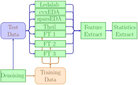 Unlike non-parametric statistics, however, machine learning relies on a training dataset where relatively short (although not necessarily exact) spans of signal are annotated as positive and negative examples of the pattern of interest. Manually creating such a dataset at the scale required for training an ANN is a daunting task, and such methods are typically used in tasks where datasets of positive and negative examples are readily available or can be extracted at scale. In our case, it is preferable to focus on unsupervised methods that can be trained to separate the fast-moving and the slow-moving component of the EDA signal without explicit examples.
