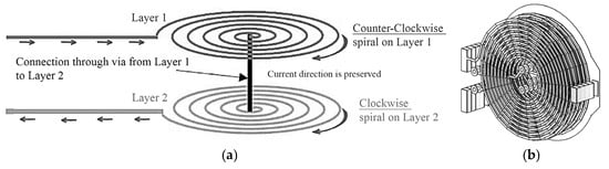 - Park, Y.-J.; Kim, J.-E.; Na, K.-M.; Yang, K.-D.; Cho, K.-H. Optimization and Analysis of Multilayer Planar Spiral Coils for the Application of Magnetic Resonance Wireless Power Transfer to Wearable Devices. Energies 2021, 14, 5113. [Google Scholar] [CrossRef]