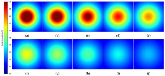 The target magnetic field is shown in Figure 15a, which was manually created using a drawing tool. The input image has a size of , as this resolution was previously found to give the best results (see Table 5).