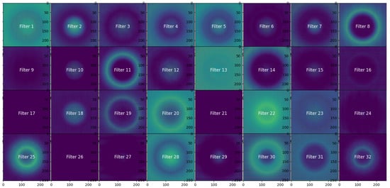 The model takes an input image with a size of pixels. The image does not reflect a real measured or simulated magnetic field distribution, but a distribution drawn by hand (prescribed magnetic field distribution by a designer) to assess the results. After the image is given to the CNN, it predicts the shape and size of a planar coil that would produce a similar magnetic field.