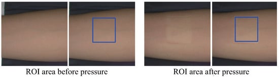 ROI area, indicated by the blue rectangle, before and after applying pressure.