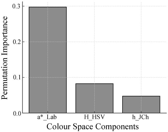 While h_JCh and a_CIELAB also exhibited a positive correlation (r = 0.783), they likely provided complementary information across polar and Cartesian colour spaces, which may have contributed to the improved classification accuracy.