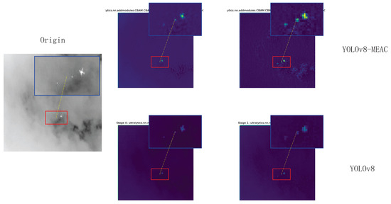 As shown in the figure, the feature and heat maps generated by the MEAC module after processing indicate that the model’s object detection performance in complex environments has significantly improved compared to the original model. The specific advantages are reflected in the following aspects: