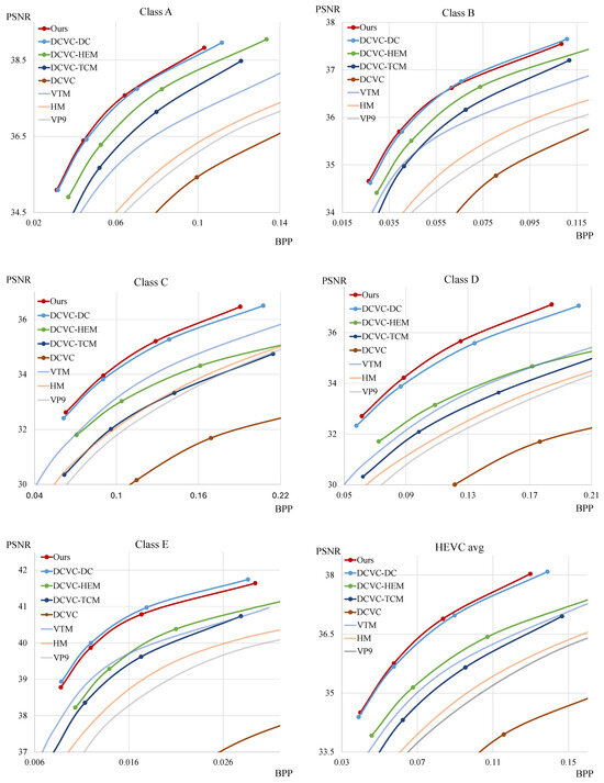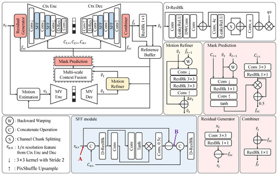 - Jia, Z.; Li, B.; Li, J.; Xie, W.; Qi, L.; Li, H.; Lu, Y. Towards Practical Real-Time Neural Video Compression. In Proceedings of the IEEE/CVF Conference on Computer Vision and Pattern Recognition (CVPR), Nashville, TN, USA, 10–17 June 2025; pp. 12543–12552. [Google Scholar]