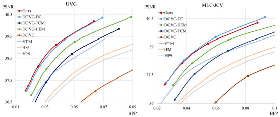 | Model | Dataset | VP9 | HM | VTM | DCVC | DCVC-TCM | DCVC-HEM | DCVC-DC | Ours |