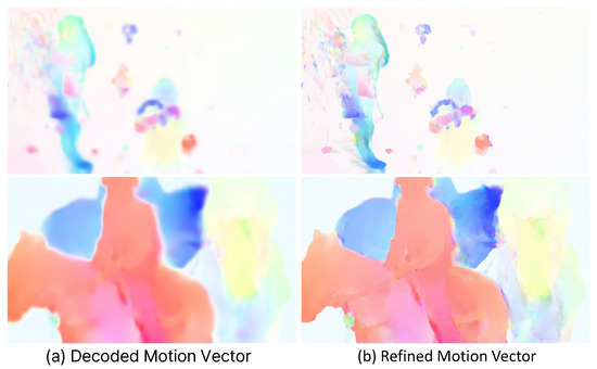 - We introduce the Motion Refiner module to enhance the quality of the decompressed motion vectors.