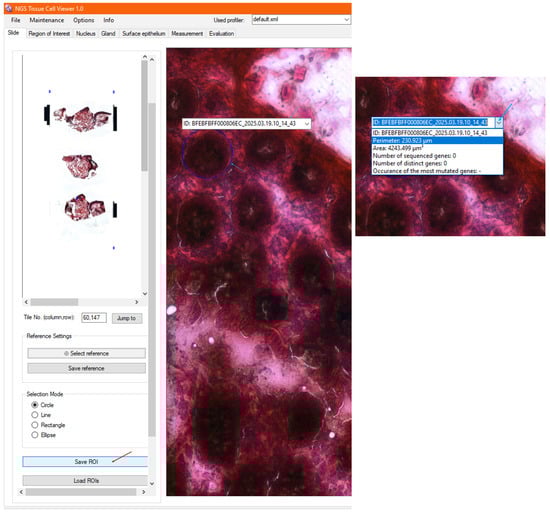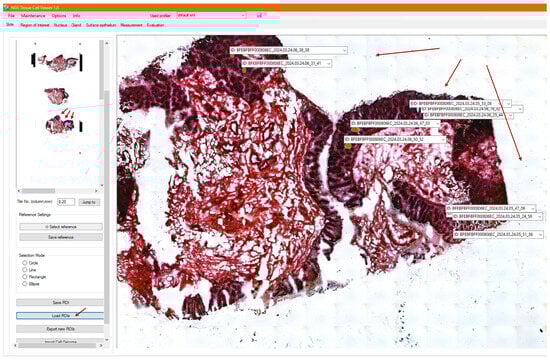 It should be emphasized that before the ROIs determined by algorithmic or manual selection can be saved, reference points must be recorded on the slide. The reason for this is that the ROI coordinates to be selected can be automatically transformed into the mm-based coordinate system of the microdissector for laser cuts. One can find the steps of reference selection in our previous work [30].