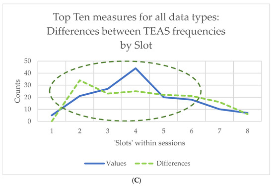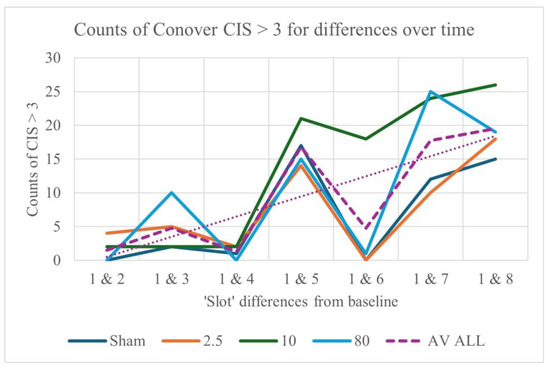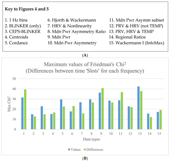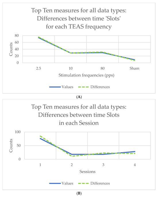 - Given the large number of variables involved in this exploratory study, most would be expected to provide little, if any, useful information on any questions we might ask of the data. In an earlier project, we explored the effects of space and terrestrial weather conditions on EEG and ECG readings collected during TEAS sessions, investigating more than 7700 features using a method called highly comparative time series analysis [81]. Here, we used a different approach, making use of what we call ‘top slicing’ methods in order to reduce the number of measures considered to something more informative and manageable. Various methods of ‘top slicing’ were compared to focus on those measures most likely to show significant differences with stimulation frequency, session, or slot within session. These are discussed below, in the Results section. Friedman’s test for repeated measures was used for both values and differences (as a non-parametric equivalent of analysis of variance, or ANOVA), with Kendall’s W as a measure of effect size, and Wilcoxon and Conover–Iman matched-pair signed-rank tests for post hoc analysis.