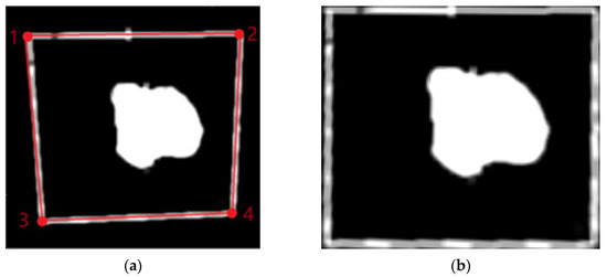 First, the contour corresponding to the maximum scanning area in the segmented image is identified. Then, four corner points representing the vertices of a quadrilateral are extracted from this contour and logically ordered to ensure the correct spatial correspondence (Figure 12).