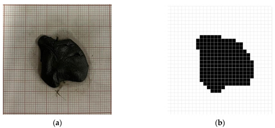 (a) Scanning of the maximum defined area perimeter and its adjustment using a standard measurement drawn on graph paper on the target and (b) definition of the region of interest in the graphical interface.