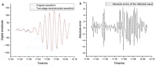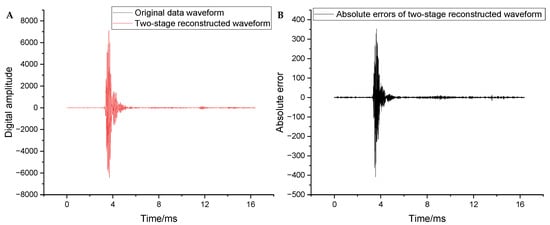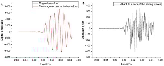 Figure 8. (A) Comparison between the reconstructed and original waveforms. (B) Absolute errors of the reconstructed waveforms.