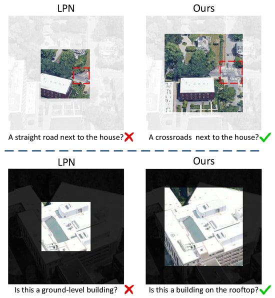 Unmanned aerial vehicles (UAVs) are widely applied in urban planning, disaster response, and remote sensing monitoring due to their flexibility and high-resolution imaging capabilities. Traditionally, drone localization relies on the Global Navigation Satellite System (GNSS) [1]. However, in urban environments, obstacles such as high-rise buildings and dense infrastructure often cause signal blockages or multipath interference, severely degrading the accuracy and reliability of GNSS-based localization. To overcome these limitations, cross-view geo-localization (CVGL) has emerged as a promising alternative. CVGL aims to estimate the location of drone images by retrieving corresponding reference images from a geotagged satellite image database despite significant viewpoint and appearance differences [2,3]. As an image retrieval problem, CVGL eliminates the dependence on GNSS and remains robust in complex or GNSS-denied environments.
