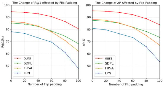 The partitioning strategy of local regions directly influences the receptive field of each part, and different region selection strategies significantly impact the model’s feature learning performance. The number of local regions n is a key factor in determining model performance. Table 11 presents the experimental results of the annular segmentation method using our partitioning strategy with different values of n on the University-1652 dataset. The results indicate that our proposed region selection method achieves optimal performance when n = 6. If n is too small, the model may fail to capture sufficient local features, leading to inadequate feature representation. Conversely, if n is too large, excessive noise may be introduced, reducing generalization ability. These findings demonstrate that a well-designed region partitioning strategy can effectively enhance both feature extraction capability and model robustness.