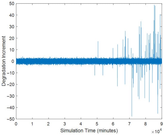Then based on the given parameters, we define the interval time as 1 and then can obtain the degradation path and the increment process are shown in Figure 4 and Figure 5.