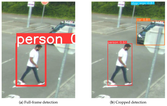 By cropping the frame to these regions, the resulting images do not have to be down-sampled to meet the resolution requirements of the object detection algorithm, therefore reducing information loss. Accuracy and latency results achieved using this method are compared with the ‘out-of-the-box’ object detection method of running the same algorithm on each full frame of the RGB camera data.