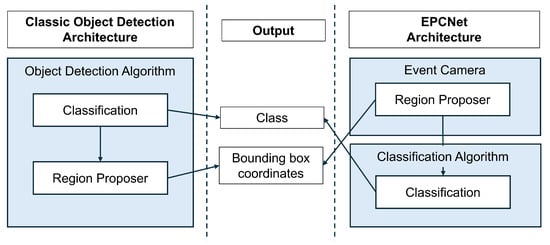 The further enhancement of the system investigates the implementation of an Event-Region Proposal and Classification Network (EPCNet). The event camera clusters are used for object region proposal, and a classification algorithm is used for object classification. This EPCNet design reduces the complexity of the network by using a classification algorithm instead of an object detection algorithm, thereby reducing latency.