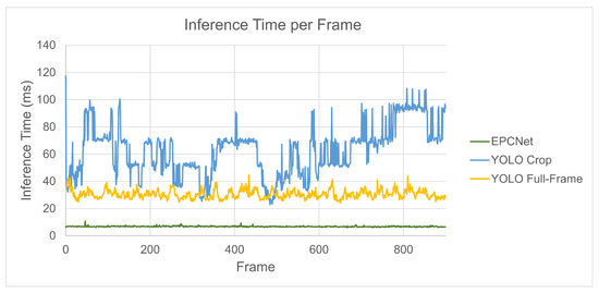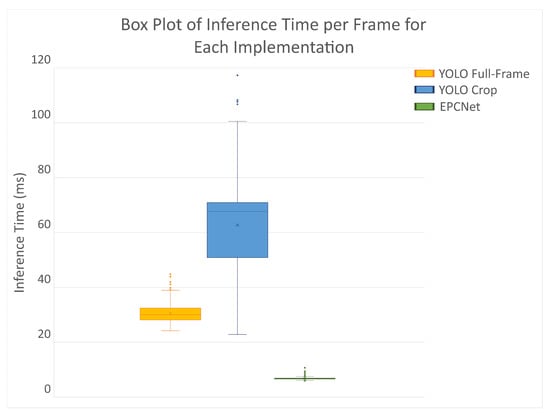 For EPCNet to be viable in real-time applications, the process of clustering, ROI definition, cropping, and classification would need to be faster than single RGB image analysis. This would require the algorithm to be optimized to reduce image processing time, avoiding any additional latency added to the system. The nature of the design means that latency could also be reduced in other ways by redesigning the physical setup and processing pipeline. The resolution of the camera used could be decreased to improve the frame rate or by specifying the target pixels in the camera prior to readout, as discussed in the previous section. All of this will be investigated further in future research.