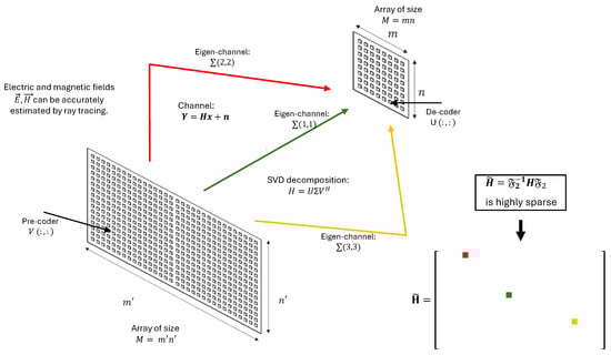 The channel matrix can be understood to analyze these propagation phenomena as the result of multiple dominant rays, each corresponding to a physical path. These dominant rays define the primary eigenchannels of the matrix , which can be effectively decomposed using the SVD (1).