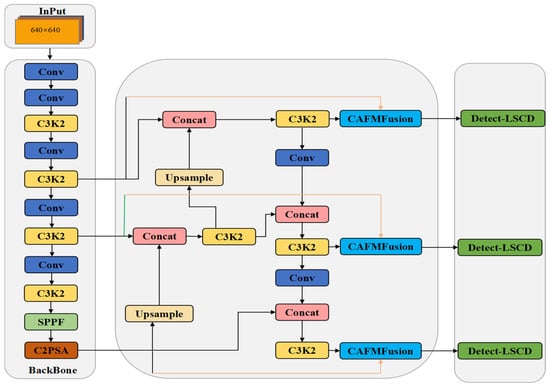 Schematic diagram of the target-detection network architecture based on the CAFM Fusion module.